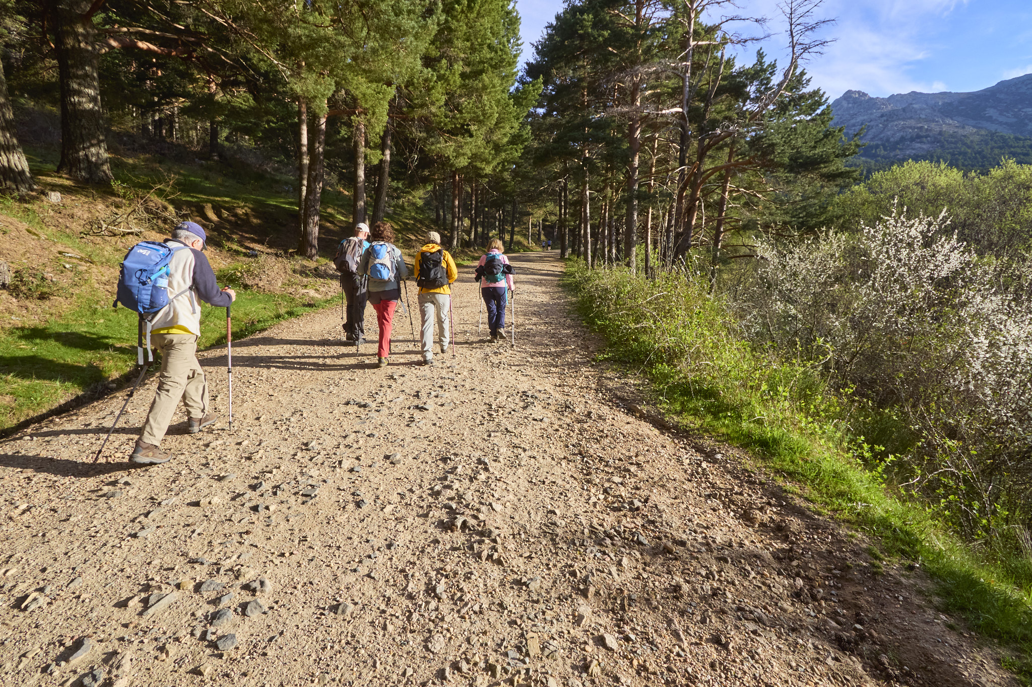Recuperando viejas tradiciones edutoursianas, los convocados madrugaron como hacía tiempo que no lo hacían. Susana preveía que el aparcamiento de La Barranca se agotaría pronto y así fue. A la hora que habíamos quedado, las 08.45h.,ya estaba ocupado al 70% aproximadamente. Un día espléndido de primavera invitaba a los madrileños a salir. Era una romería pero la amplitud de la Sierra de Guadarrama permite a la vez acoger a todos y hacerles disfrutar.