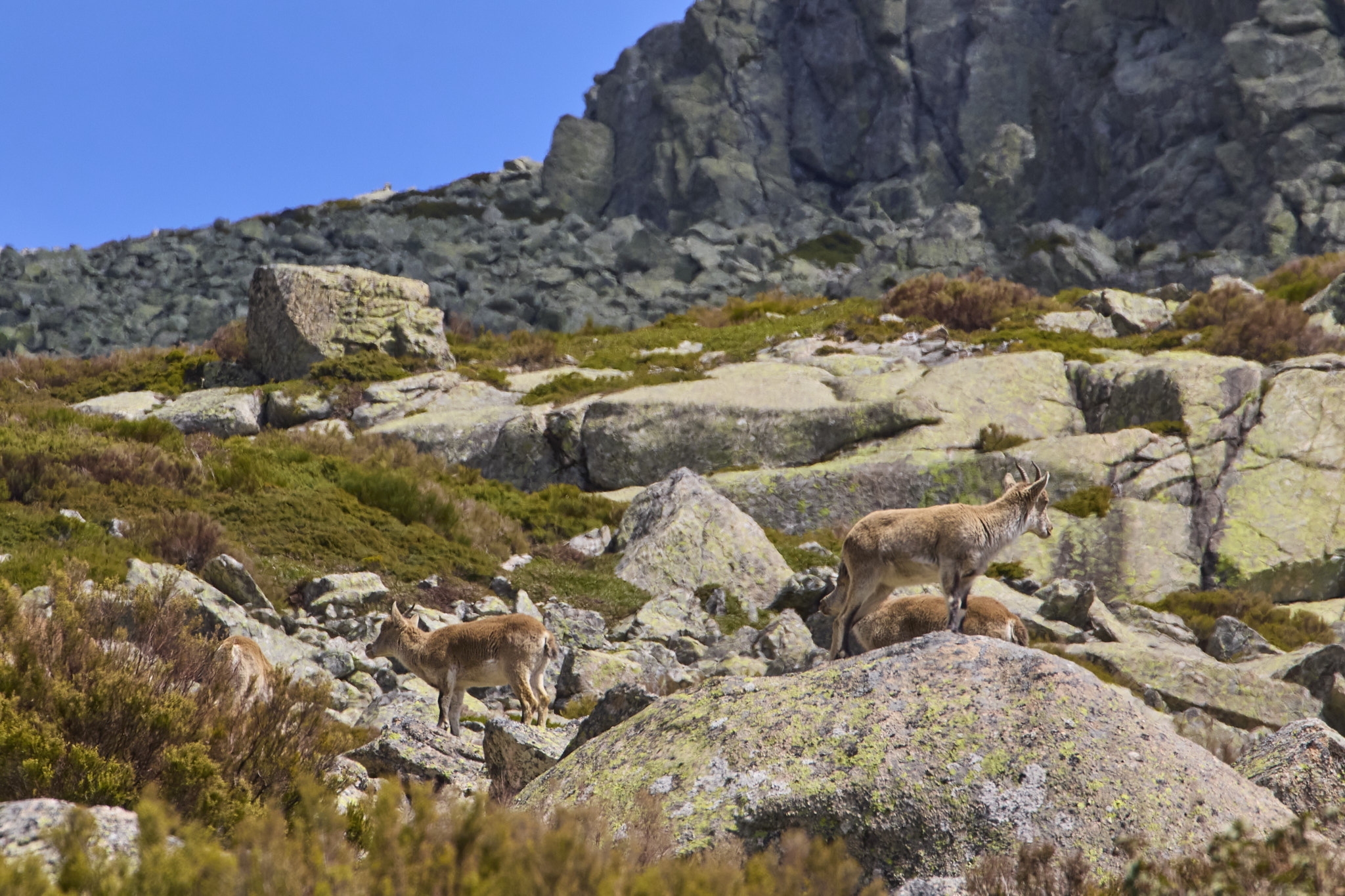La dureza de la bajada hizo que nos proporcionó una dosis masiva de Edutoursiol®, potente antidoto natural contra la Guadaramina. en totat oposición con la multitud de la subida solo vimos 2 personas delante y 3 grupos de una decena de cabras montesas cada uno, hembras con crías.